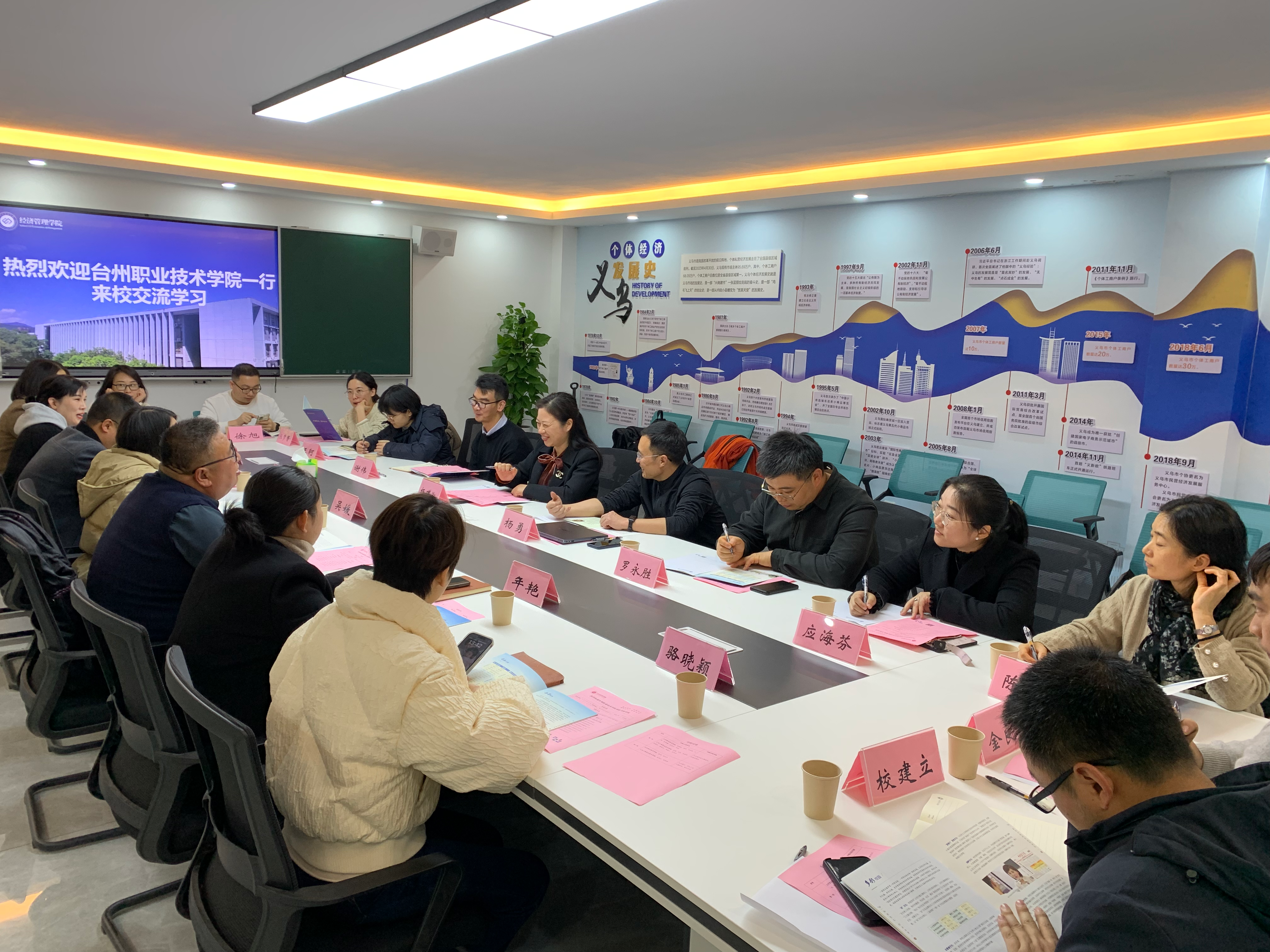 12月15日下午,台州职业技术公司管理公司经理杨瑾淑一行9人来我校考察交流。304永利集团登录入口领导班子及相关工作人员陪同走访、参加座谈。
