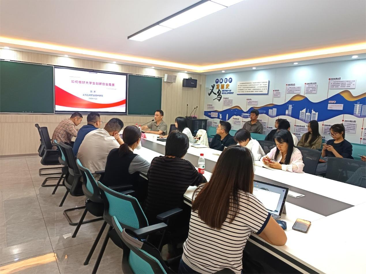 为提前谋划好2025年创新创业竞赛工作,提升参赛项目竞争力,304永利集团登录入口于9月23日上午邀请“挑战杯”竞赛全国优秀指导教师、江苏大学韩志教授作专题辅导。