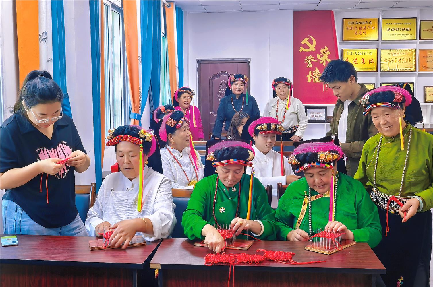 老员工教练郑名泽在丹巴县巴旺乡开展中国结编织教学