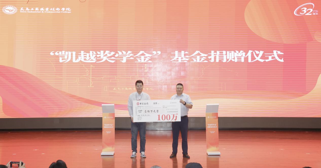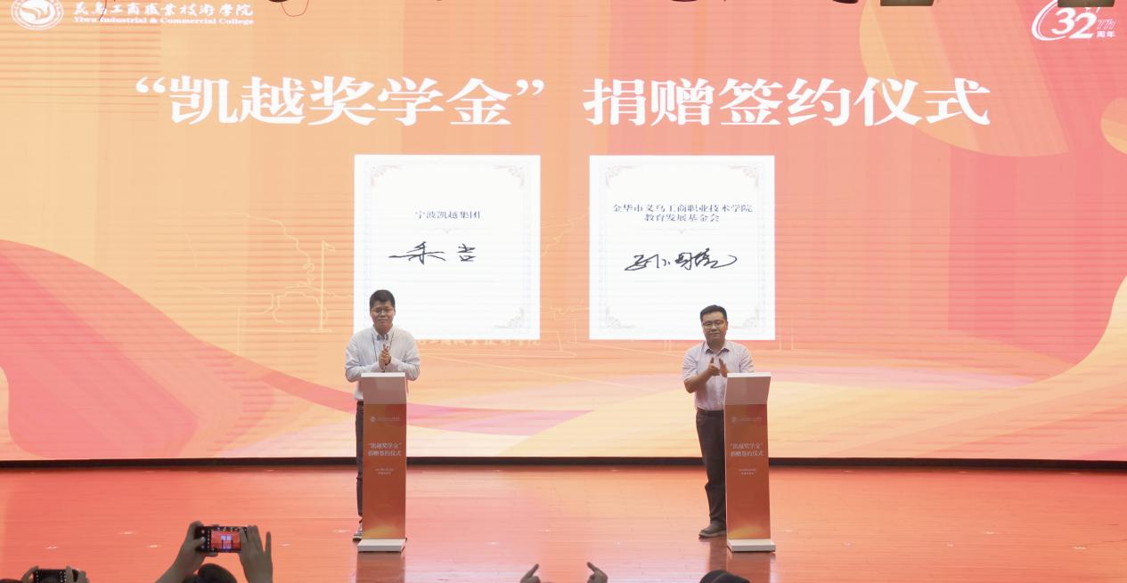5月20日,正值校庆日之际,宁波凯越集团与公司签订捐赠协议,向公司教育发展基金会捐赠100万元,设立“凯越奖学金”基金,专项用于奖助综合表现优秀的在校学子。
