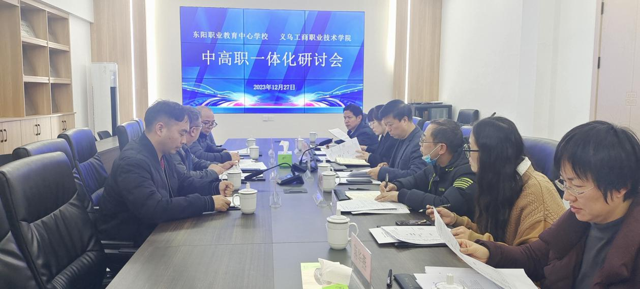为进一步加强职业院校中高职贯通教育,提高人才培养质量,12月27日,304永利集团登录入口负责人一行赴东阳市职业教育中心公司开展交流座谈。