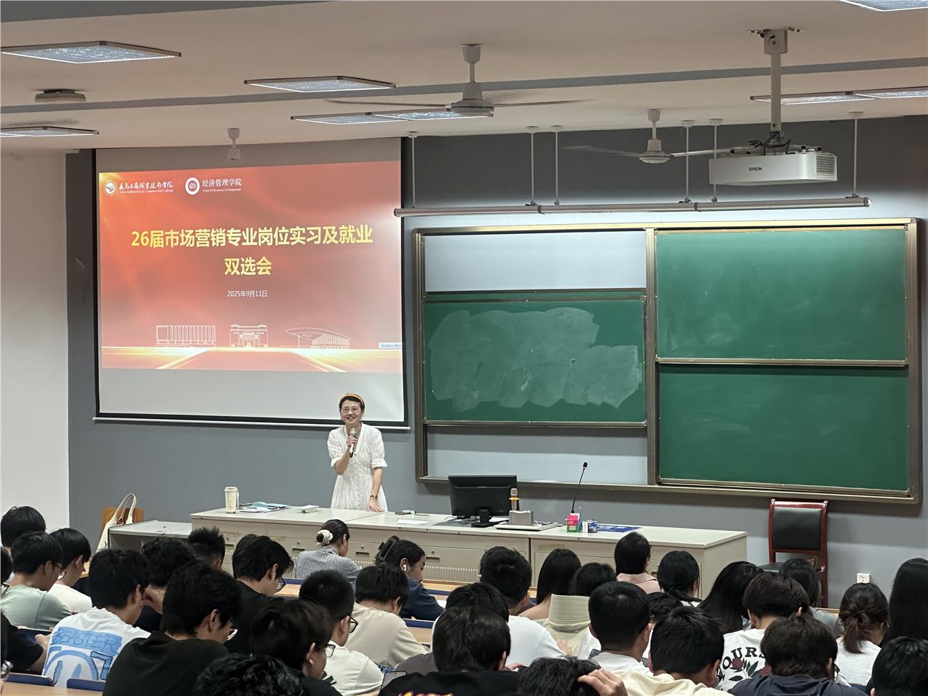 为深化产教融合,搭建校企合作平台,助力员工高质量就业,9月11日,304永利集团登录入口市场营销专业岗位实习及就业双选会在阶梯教室一举行,2026届市场营销专业全体员工到会。本次双选会汇聚了金华亚通汽车销售有限公司、福州塔斯汀餐饮管理有限公司、杭州联华华商集团、义乌市双童日用品有限公司等多家知名企业,为员工提供涵盖市场策划、数字营销、客户管理、销售培训等多元实习岗位。