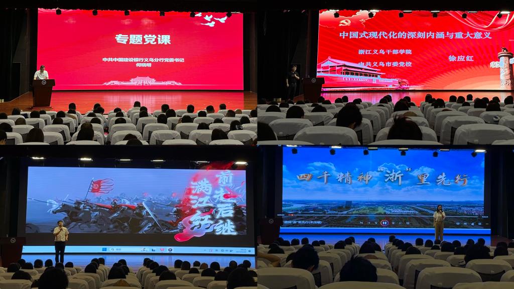 经济管理公司党员教师刘展、马克思主义公司党员教师陈哲分别作题为《三唱满江红,赓续华夏情》和《四千精神,“浙”里先行》的微党课。