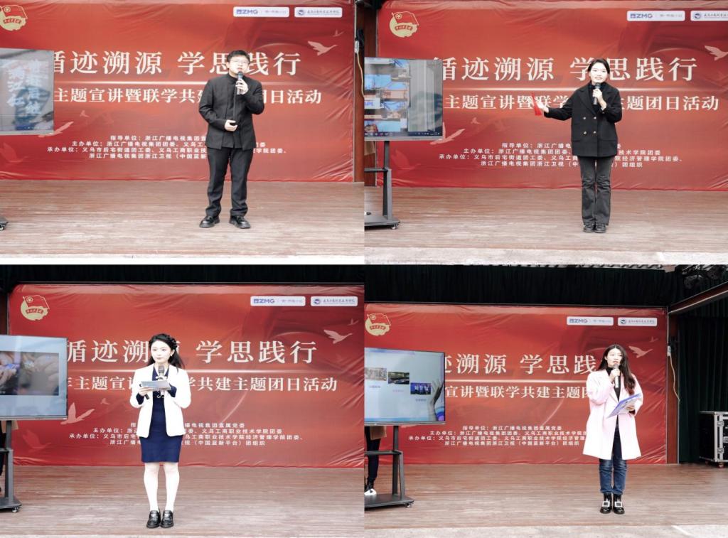 研讨交流后,党员教师们又参加了公司“红领宣讲团”携手浙江广电集团“雁行队”开展的“循迹溯源、学思践行”青年主题宣讲暨联学共建主题团日活动。与青年员工、青年记者、青年创客们一起聆听了一堂有思想厚度、有理论深度、有情感温度、有青春热度的思政宣讲大课。