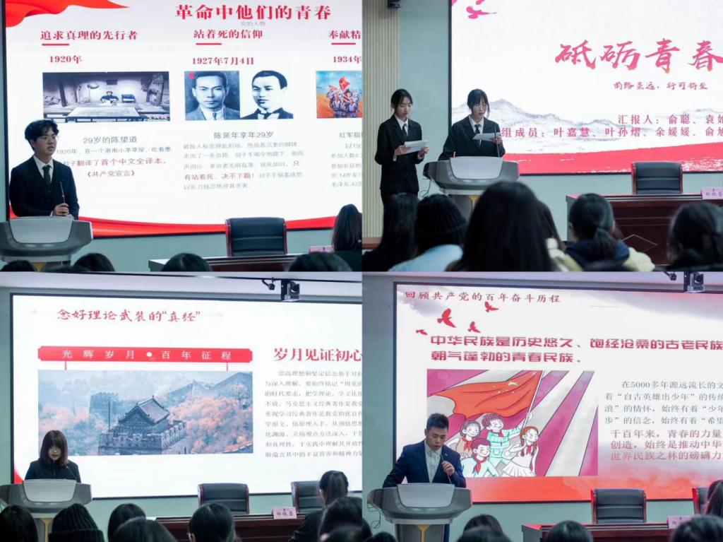 施凯耀同学以“少年当立凌云志,奋进逐梦揽星辰”为宣言,呼吁大家要承担起祖国的富强,民族的复兴,人民的幸福之时代担当,尽其才,奋其志。谢家俊同学以“砥砺青春壮志,用青春绘画山河”为主题讲述革命先烈的青年事迹,新中国的崛起之路,并融入了分党校学习的心得体会。他表示要继续锤炼党性、知行合一,做一个负责任的新青年,树立远大理想,诠释青春奋斗。