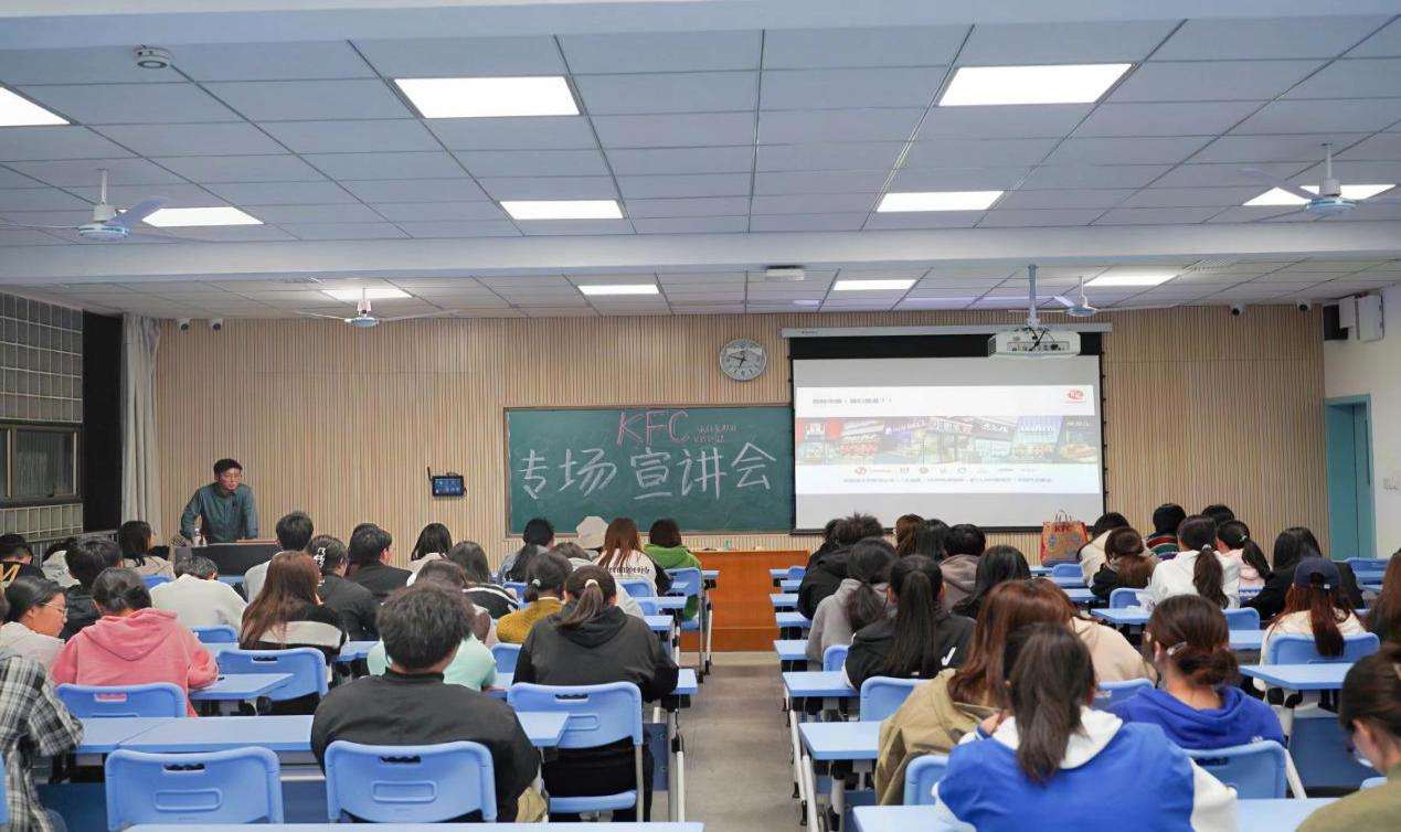 宣讲会上,张士佳详细介绍了杭州肯德基有限公司的机构组成、发展现状及人才培养计划,着重讲解了企业文化及职工薪资待遇,分享公司内部人事管理模式。他还深入讲解培养计划、训练体系以及数字化学习生态系统。张士佳表示,浙江是中国肯德基门店数最多的省份,公司未来具有非常大的发展潜力,公司还在扩大规模中,亟需更多新鲜血液为公司增添动力。