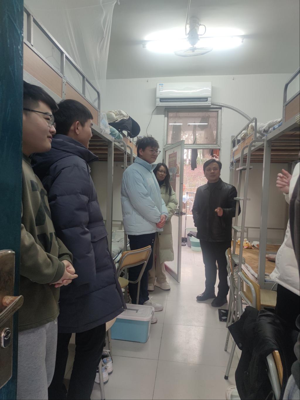 会后,叶斯源深入员工宿舍,详细了解同学们的生活情况,认真听取寝室管理员和同学们的意见和建议。