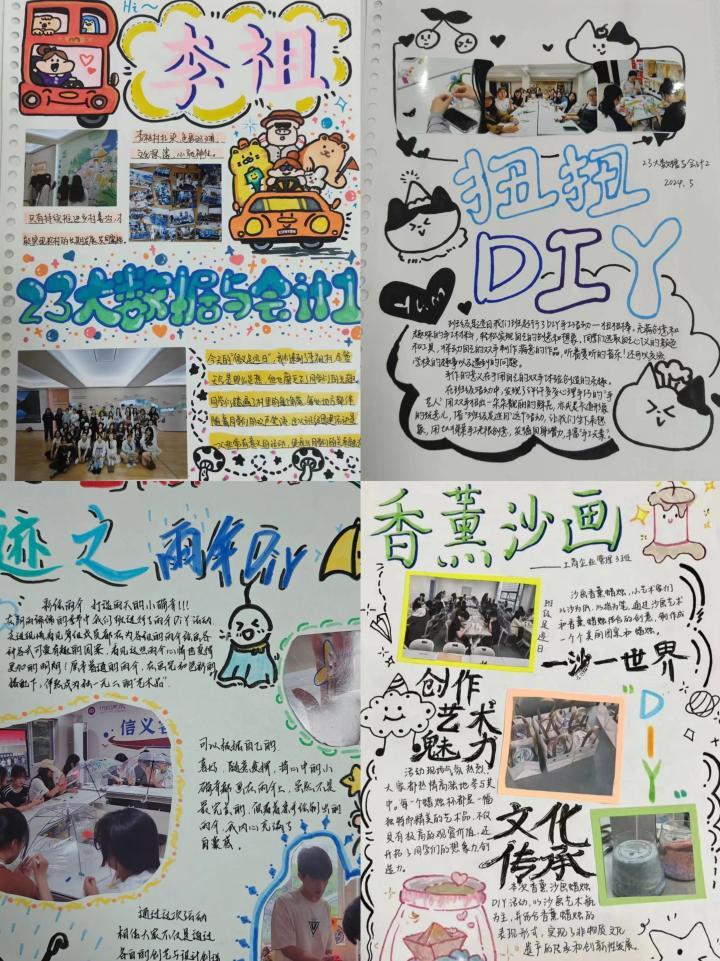 每期“信义足迹日”结束后,团支部同学会主动绘制团建手账,将活动的精彩瞬间和深刻感悟记录下来。在绘制过程中,同学们充分发挥想象力和创造力,将活动的主题、时间、参与人员、活动流程、亮点回顾、个人感悟等以图文的形式展现出来。这不仅加深同学们对“信义足迹日”活动的理解和记忆,还能将珍贵的记忆更好地保存。