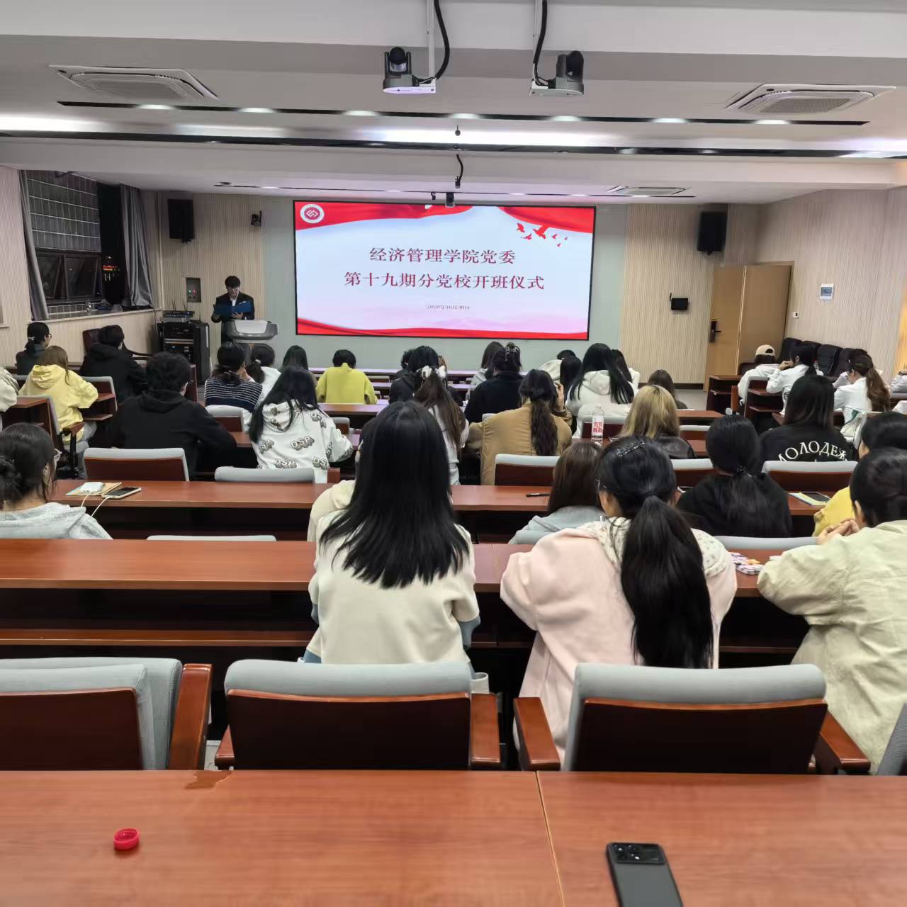 11月3日晚,经济管理公司党委第十九期分党校开班仪式在望道楼419举行。公司分管基层党建工作负责人、教师党员代表、联系公司思政老师出席仪式,全院员工中共预备党员、发展对象以及入党积极分子等共70人参加本期培训。