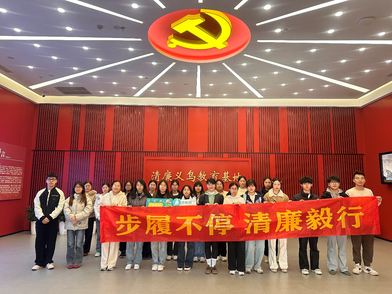 在义乌农商银行总行廉政教育基地和清廉义乌廉政教育基地,师生们深入感悟“铁账本、铁规章、铁纪律”的“三铁精神”,深刻体会到严明纪律与专业操守的内在统一。