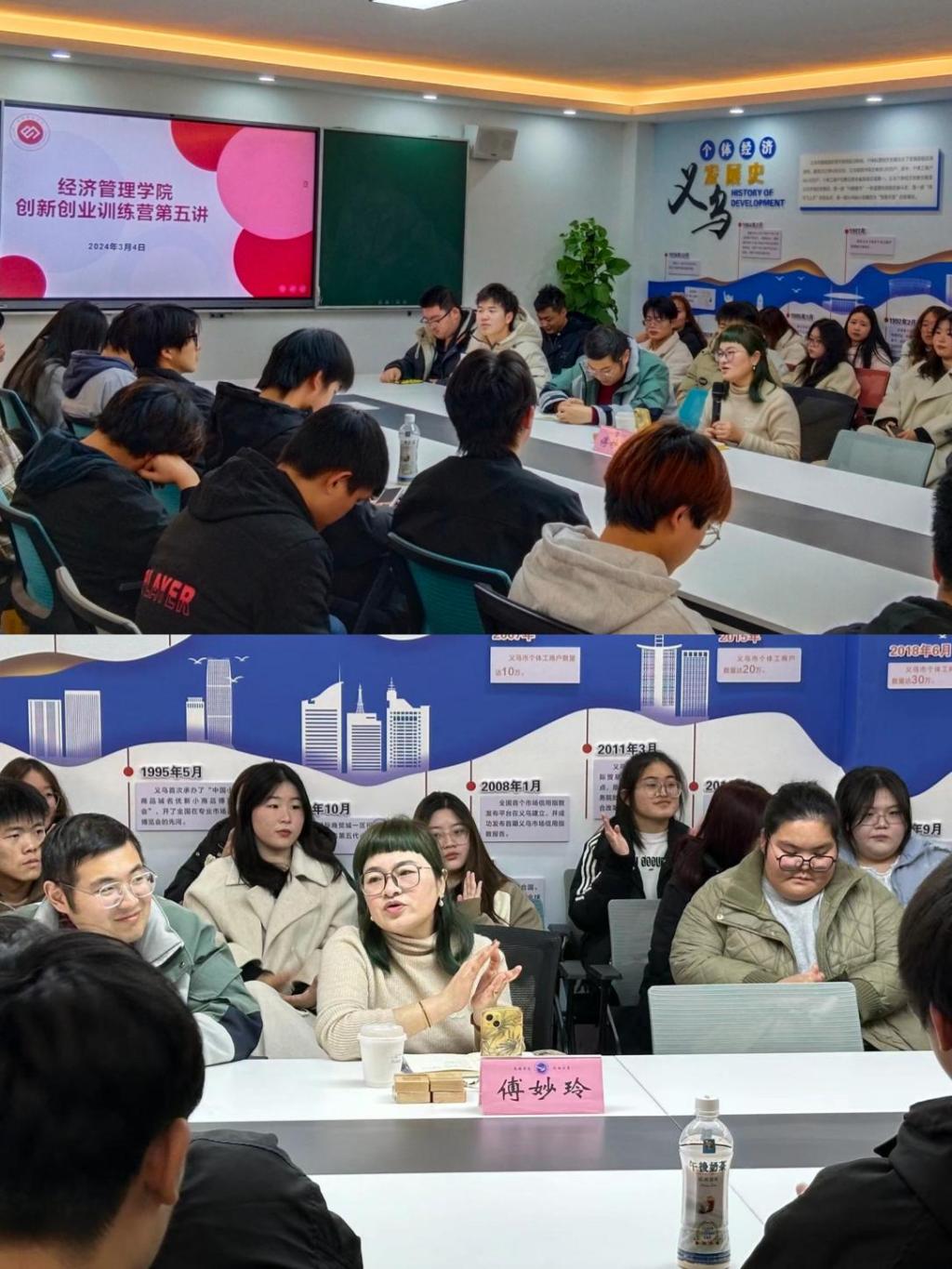 从白手起家到如今义乌竹木制品的行业标杆,傅妙玲的创业历程艰辛曲折,她将自己创业的经验归纳为三个词:学习、实践、规划。她强调,需要时刻保持勤学好问的心态,同时提前做好规划,要充分利用寒暑假时间去做市场调研、实践。她指出,除了有明确的规划和目标,还要接受自己的平凡,允许自己犯错误,有良好的心态才能跨过创业路上的绊脚石。