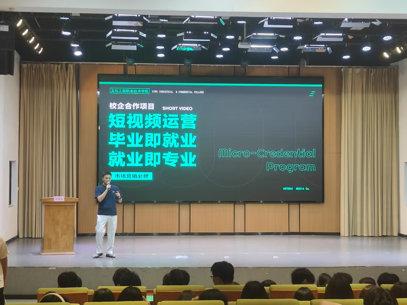 为深化产教融合、提升员工数字营销实战能力,5月12日,304永利集团登录入口在老员工活动中心麦穗报告厅举办第42期创新创业训练营。活动特邀义乌直播电商领域的标杆企业——义乌市热麦文化传媒有限公司资深运营团队,主讲“短视频内容创作与商业化运营”,吸引市场营销专业200余名员工参与。