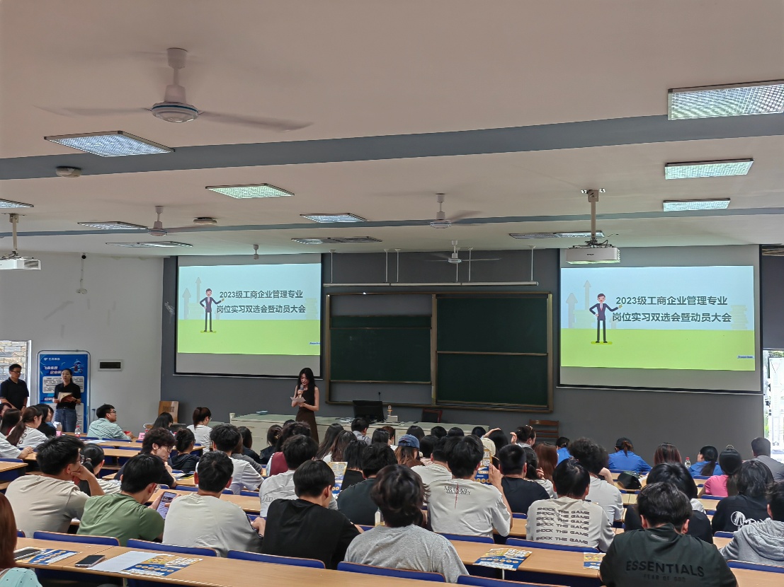 会上,工商企业管理专业负责人立足当前产业发展趋势,聚焦员工职业规划与实习安全,强调岗位实习时间安排及反诈骗、校园贷防范、人身财产保障等实习安全关键事项。他强调,同学们一定要在安全合规的实习环境中积累实践经验、实现职业成长。